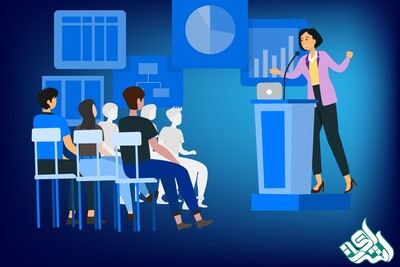 ارائه شفاهی: نویسنده در مقابل حضار به ارائه مقاله پرداخته و یافتههای خود را توضیح میدهد.