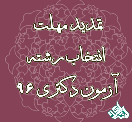 موسسه انتشاراتی اشراق:داوطلبان آزمون دکتری 1396 سراسری تا ساعت 24 فردا، شنبه 16 اردیبهشت ماه مهلت دارند نسبت به انتخاب رشته اقدام نمایند.