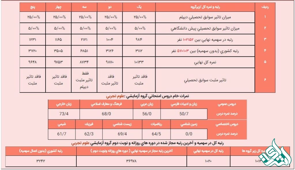 سرانجام این معدل موثر تراز شده، به میزان 20% در نمره کل داوطلب اثر می گذارد.